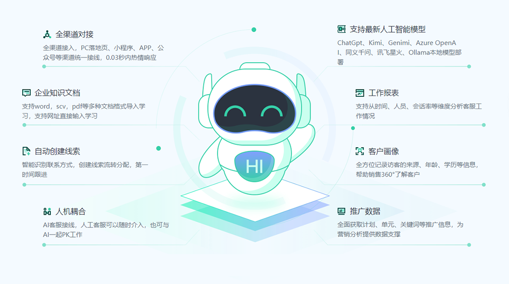 多終端宣傳、潛在客戶挖掘、智能客服轉化、CRM跟進,幫助您永遠不錯過潛在客戶。